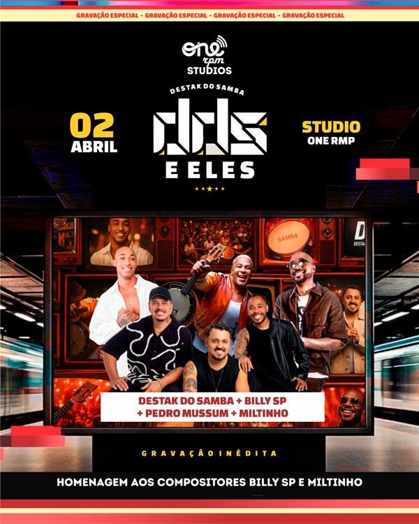 O Grupo Destak do Samba anuncia o lançamento do projeto DDS E ELES, que marca a transformação do coletivo em uma label independente com objetivo de rodar o Brasil e promover nova cena do samba contemporâneo. Gravado nos estúdios da ONERPM — que abriu as portas para o Destak — o primeiro capítulo do projeto traz participações especiais de Billy SP, Miltinho e Pedro Mussum (neto do saudoso Mussum).